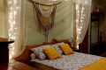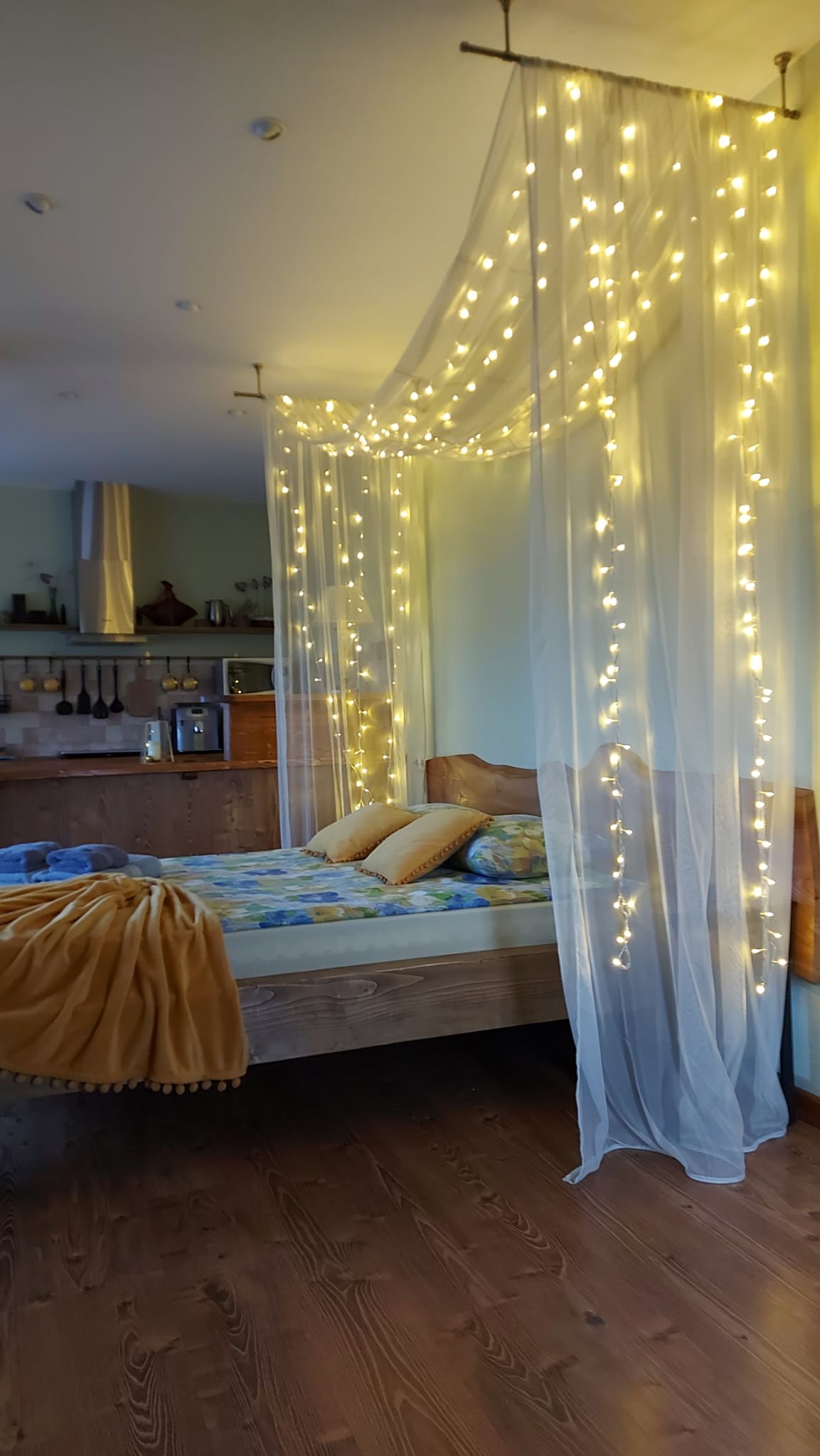 Apartments with balcony for 2 people (bed 140 x 200, towels, hairdryer, internet, heated floors, kitchenette with everything you need to prepare and enjoy a meal, quality drinking water, coffee machine, grill, skewers, balcony with canopy and garden view). The apartments can accommodate one or two additional guests and are located 10 m from the pool and sauna building, with access via a spiral staircase.