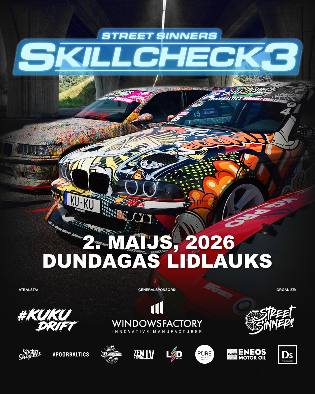 2. maijā Dundagā notiks auto pasākums Street Sinners SKILLCHECK3 - diena ar jaudu, precizitāti un īstu motora rūkoņu!