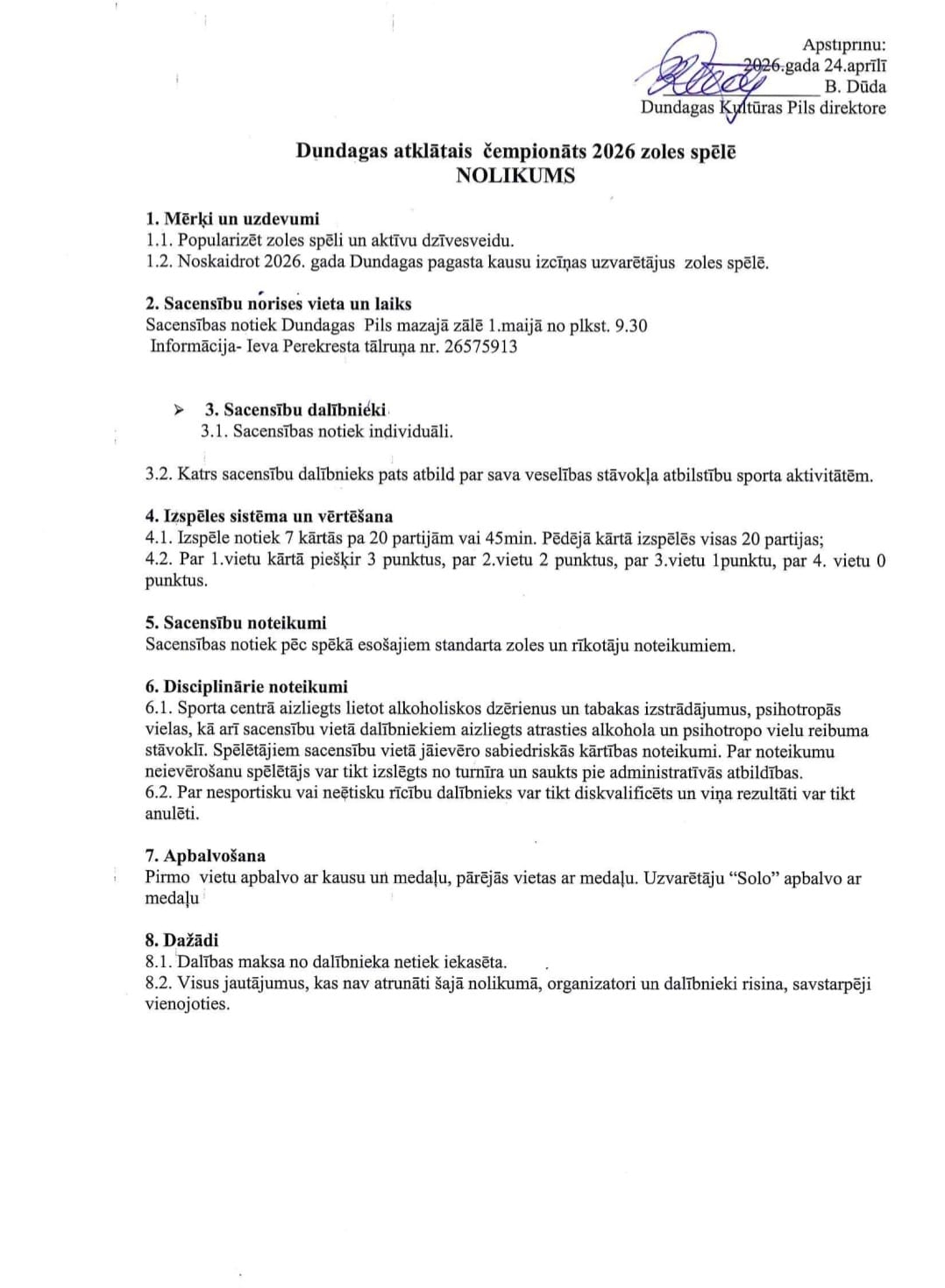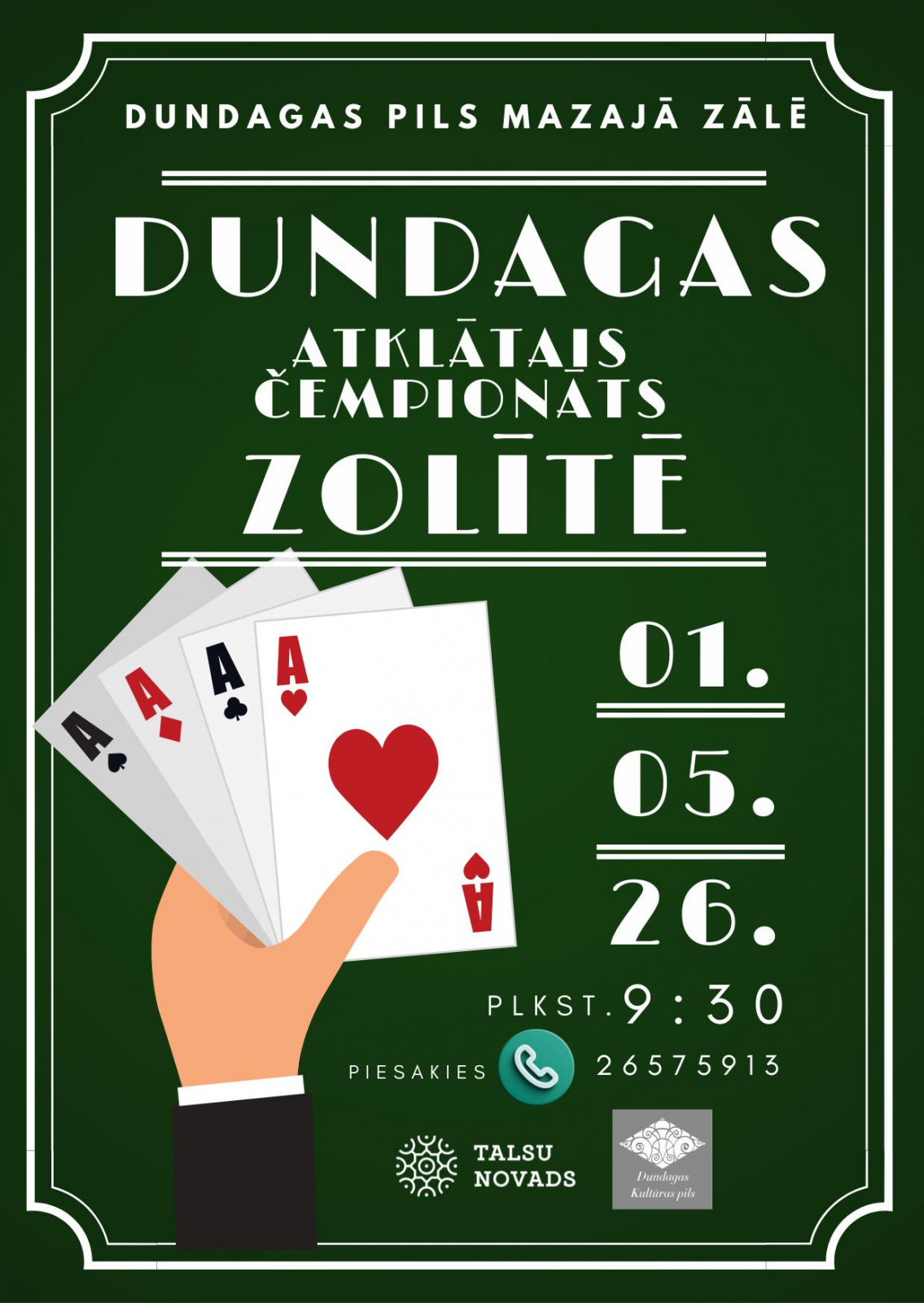 Aicinām uz Dundagas atklāto čempionātu zolītē, kas notiks Dundagas Kultūras pils mazajā zālē.