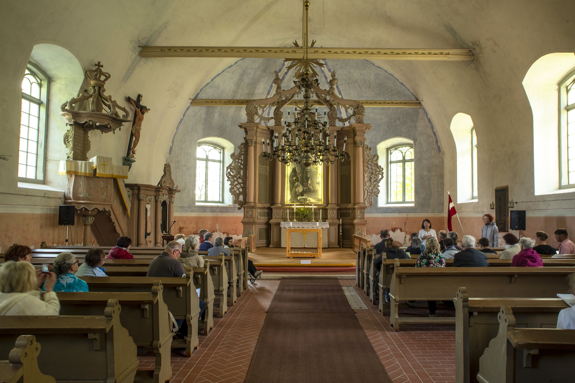 Baznīcā atrodas Jaņa Rozentāla altārglezna "Lieldienu rīts" un 1859.gadā latviešu zemnieka Anša Dinsberģa būvētās ērģeles, kā arī Bībele (1689.) un Kārļa Ulmaņa 1936.gadā dāvātā viesu grāmata ar viņa ierakstu.